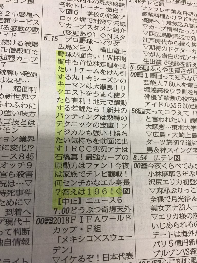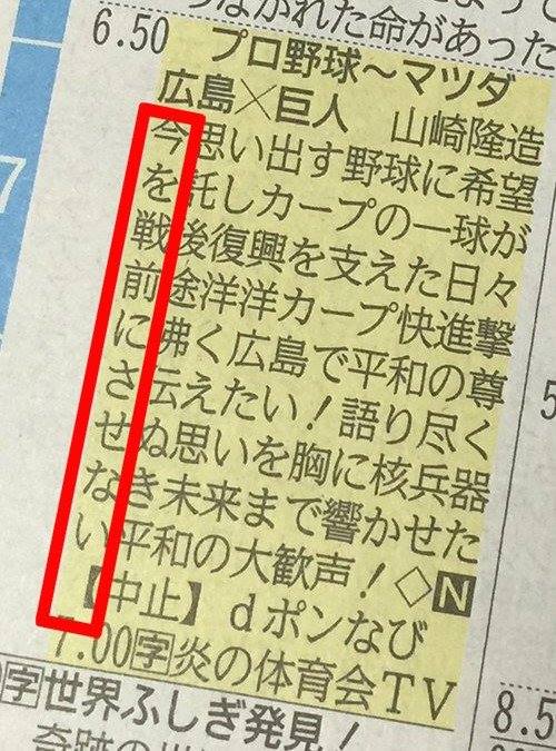 広島×巨人戦って表現で中継するのに?
