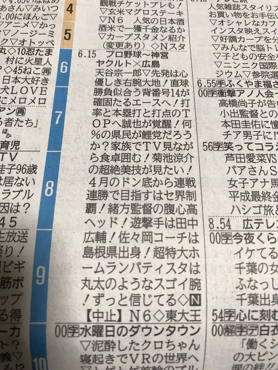 8月6日に関わらずいろんなときにRCC(中国放送)はラテ欄に